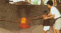 振興館は村の伝統産業を紹介しつつ、すぐれた技を次代に残していく拠点として開館しました。館内では炭についての各種資料を展示、実際に炭焼きの見学もできます。(JR南部駅から車で約30分)