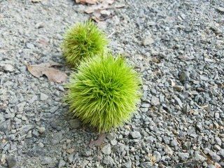 一方で秋の味覚の栗。まだ青々としてますが、道に落ちてきてます・・・